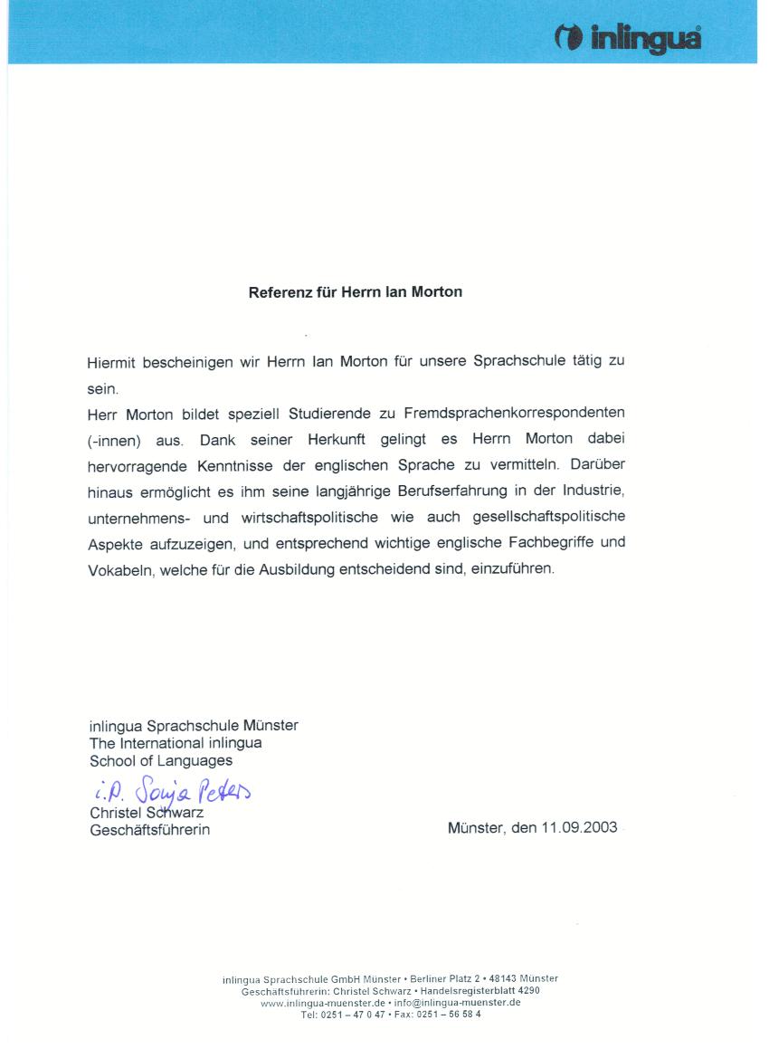 09 / 2003 Sprachschule Inlingua Münster
