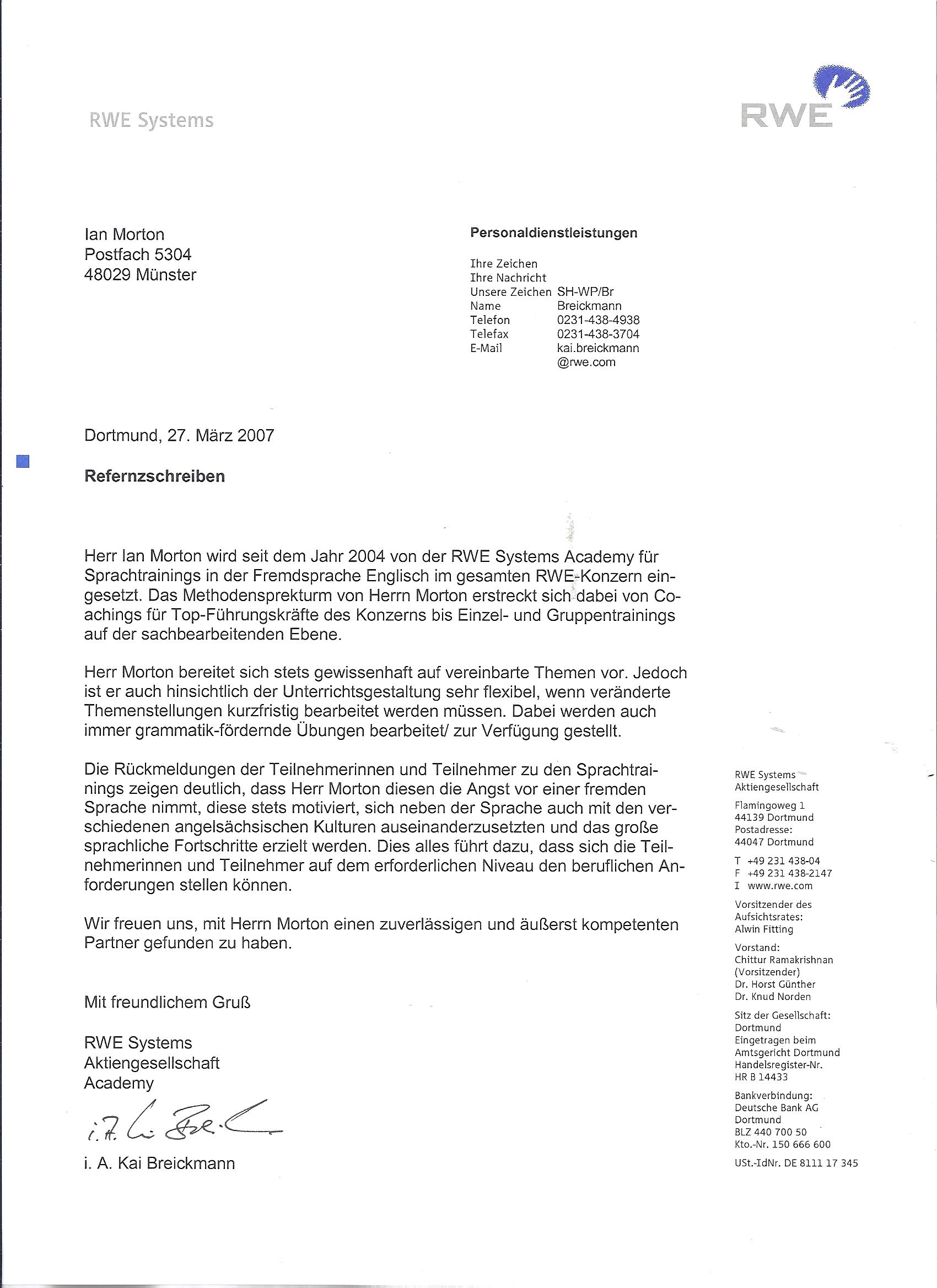 04 / 2007 RWE Academy (Personal Entwicklung) Dortmund