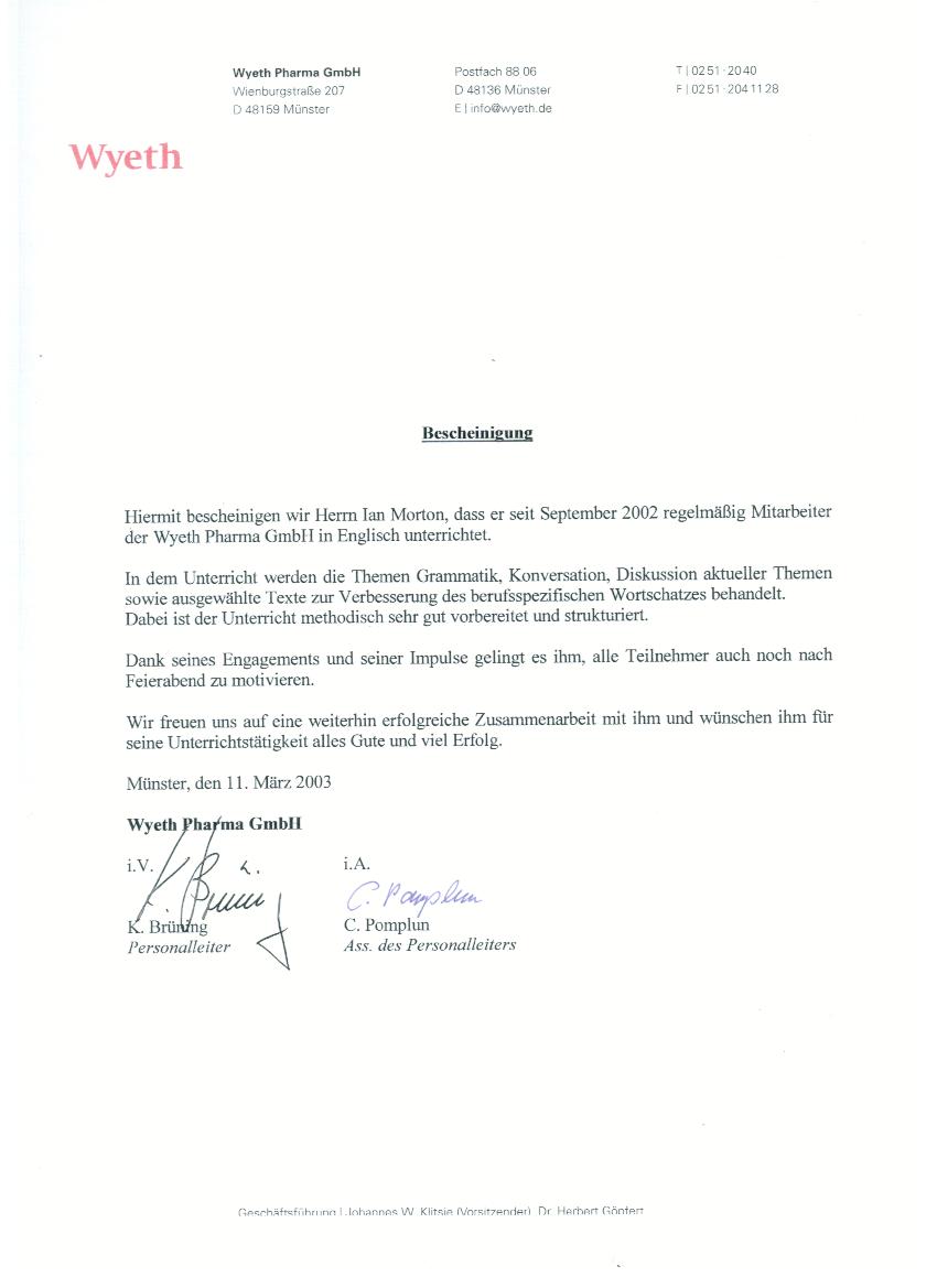11 / 2003 Wyeth (Abteilung Human Resources) Münster