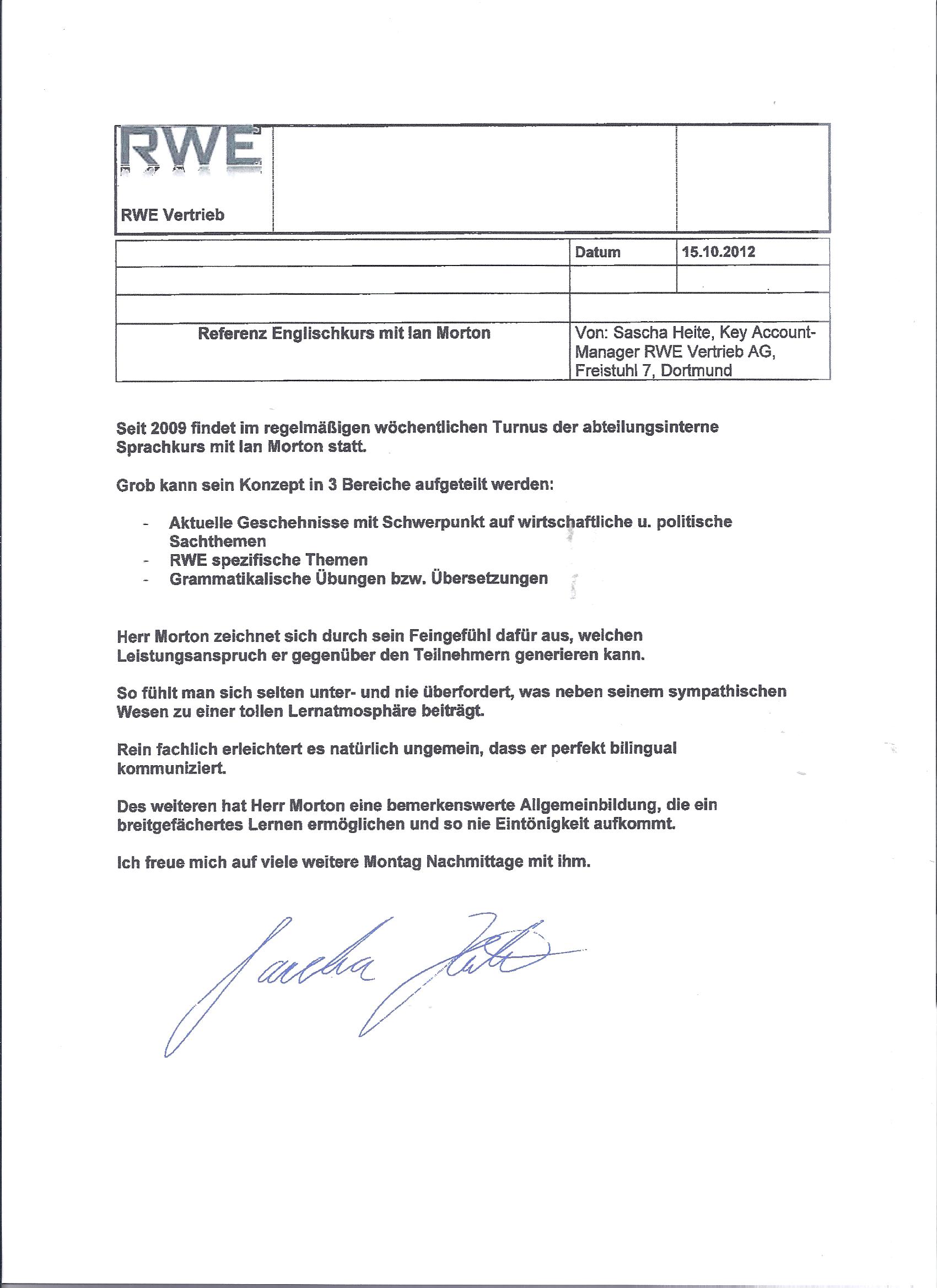 10 / 2012 RWE Vertrieb AG (Key account management) Dortmund