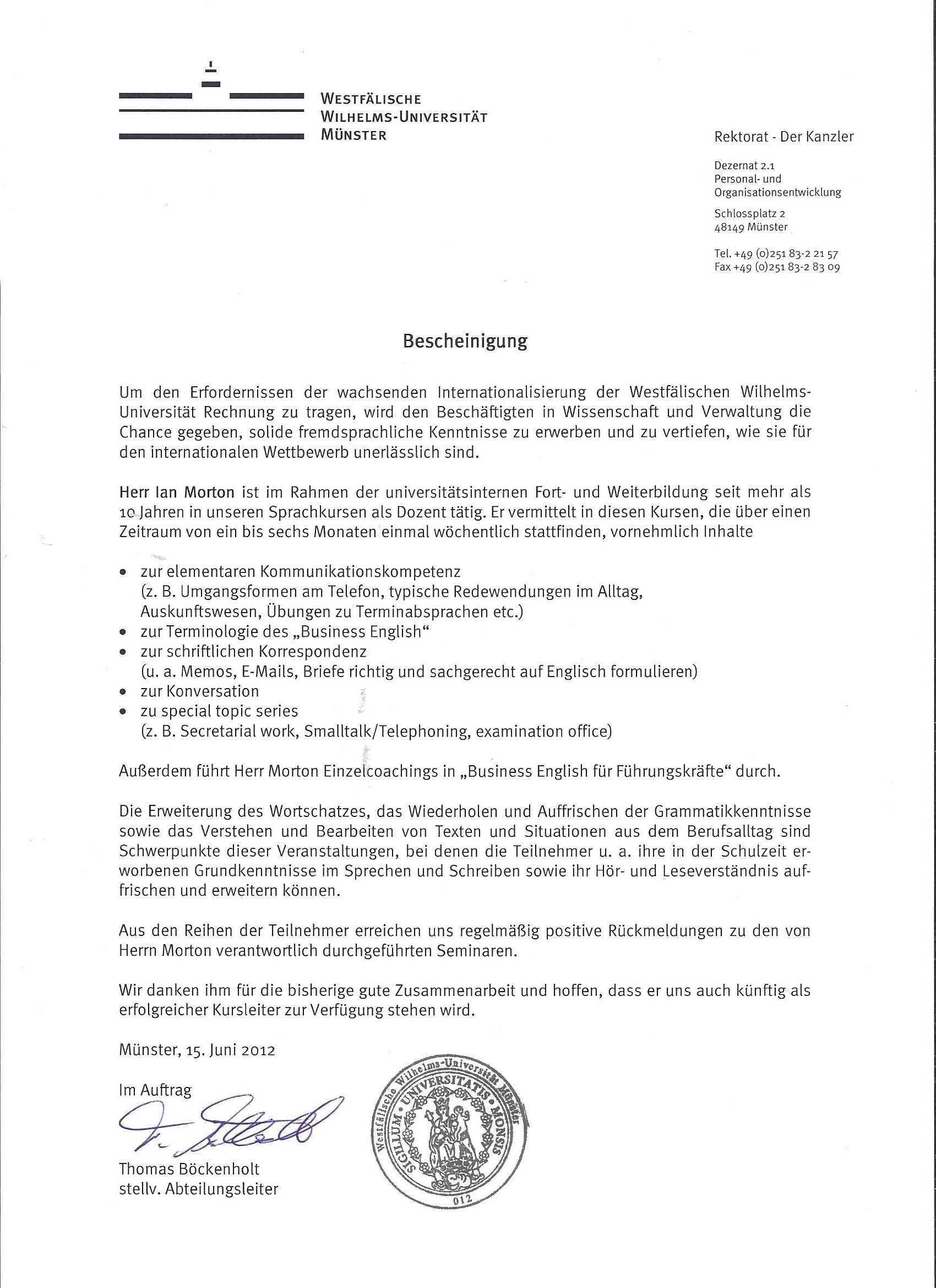09 / 2012 WWU Münster (Büro des Kanzlers)
